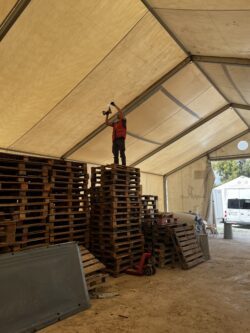 So in January 2024, Chase and Emma went to Greece for three months. Emma taught. Chase joined the maintenance team, building housing units – plastic shelters from IKEA that volunteers assemble, install floors in, and prepare for families who have crossed the Aegean Sea from Turkey in rubber rafts, sometimes in storms, sometimes with fatal consequences.